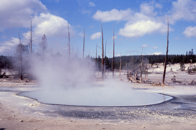 - Yellowstone National Park, which straddles Wyoming and Montana, has about 10,000 geothermal features, including around half the world’s geysers. features in the world, and in the icy cold, the hot steam arising from them is a spectacular sight.